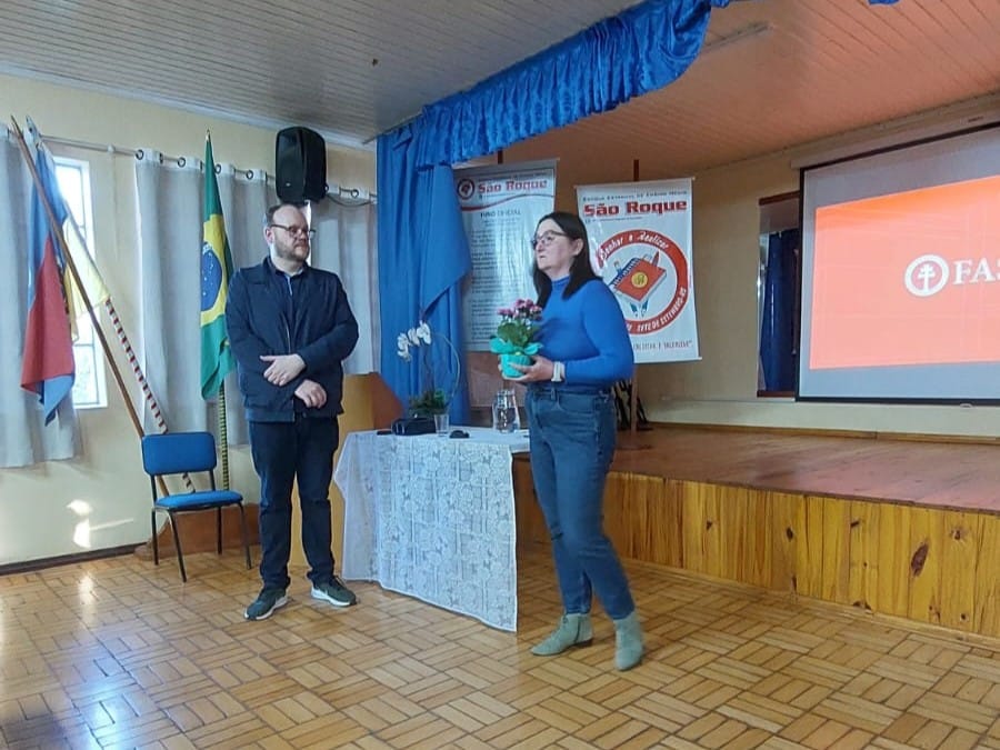 Na última terça-feira, 23 de setembro, o professor Diego Golle, diretor-pedagógico da FASA, esteve na Escola Estadual de Ensino Médio São Roque, em Sete de Setembro/RS, para ministrar a palestra “Como ser uma liderança docente e inspirar os educandos”.